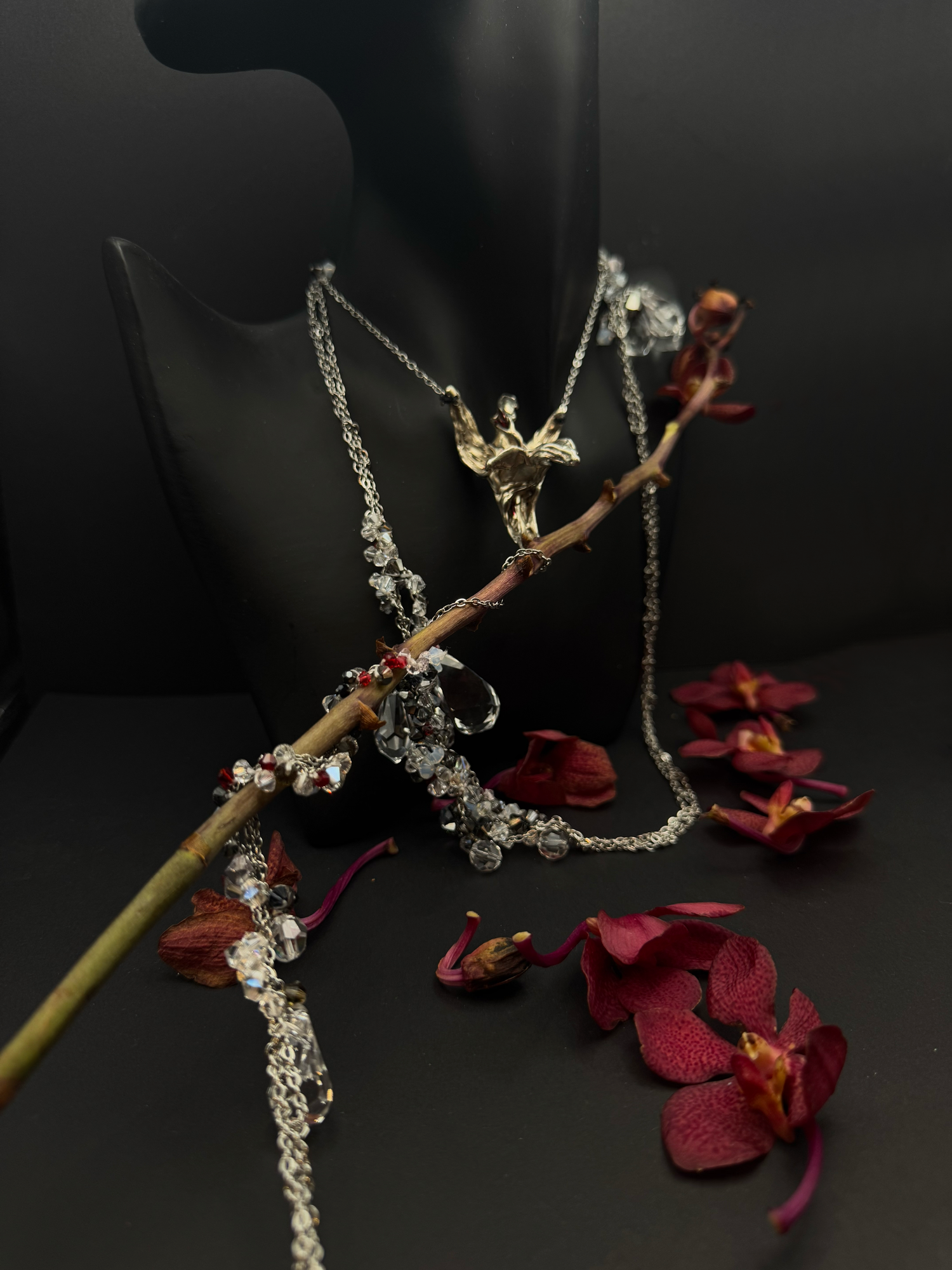This ring draws inspiration from the infamous character Pearl, from the movie of the same name. Capturing her relentless and dark pursuit of stardom, this piece embodies the paradox of beauty and horror. Just as Pearl would do whatever it takes to become the star, this ring reflects the intensity of her ambitions, marked symbolically by the blood of her victims. It’s a stunning testament to the depths of desire and the steep price of fame.